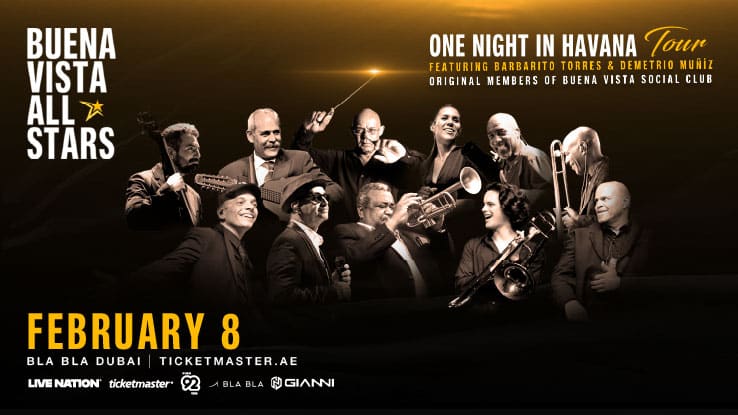 Experience the magic of Havana as the Buena Vista All Stars bring their world-renowned “One Night in Havana Tour” to Dubai on February 8, 2026, at Bla Bla Dubai. This extraordinary live performance celebrates the golden age of Cuban music, led by the last remaining original musicians from the legendary Buena Vista Social Club.